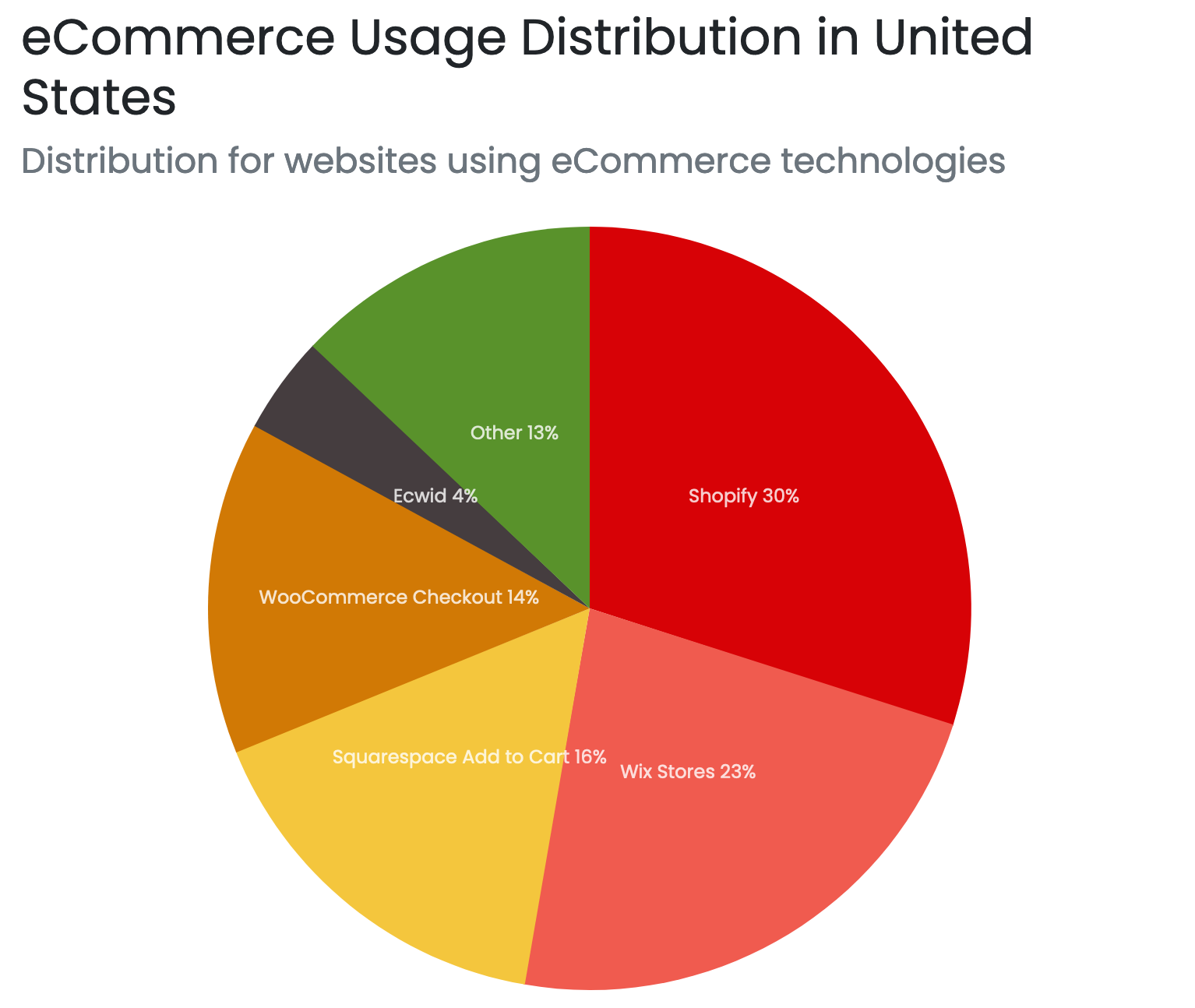 In the United States, WooCommerce’s market share is even in serious decline, according to data from BuiltWith. With 14% market share, the e-commerce plugin is outstripped by Shopify (30%), Wix Stores (23%), and Squarespace (16%):