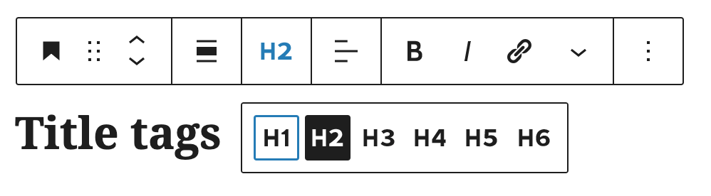 To integrate these tags in your blog article, simply insert a Title block in the Gutenberg editor, then select the tag of your choice (H1, H2, H3…). Like this: