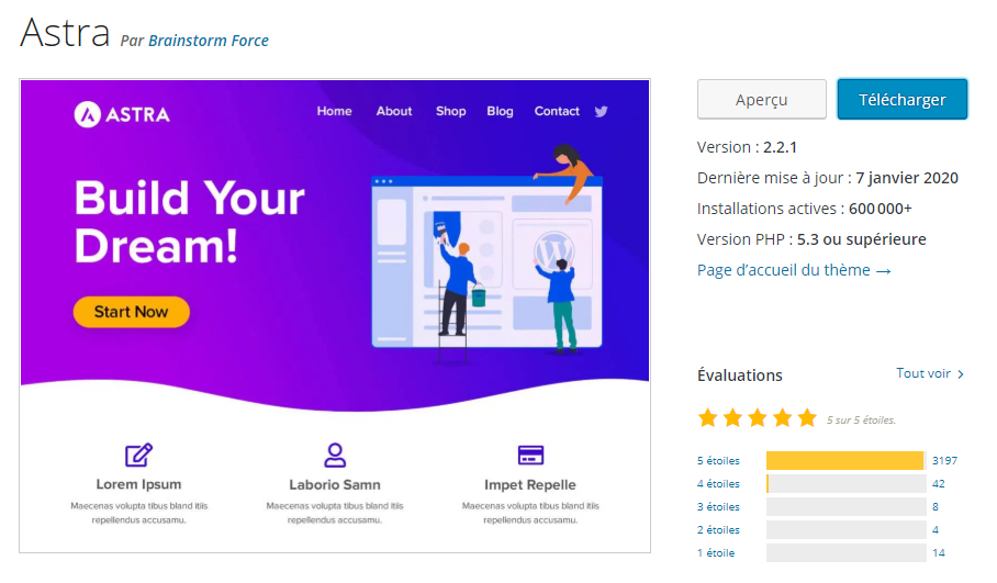 Pour le définir en quelques mots, je dirais qu’Astra se distingue par sa facilité de personnalisation, ses très nombreuses démos de sites, ou encore sa performance.