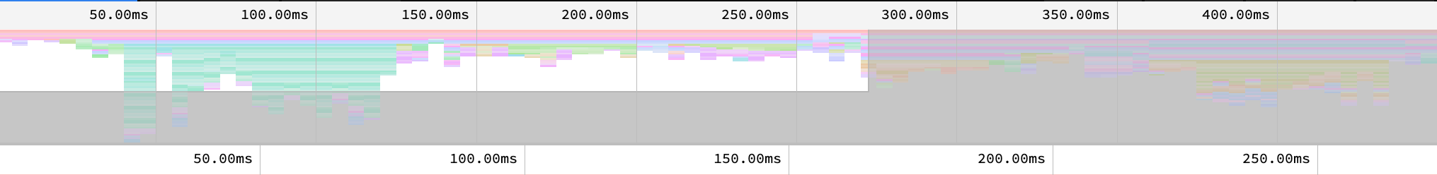 - un graphique de performances (le fameux FlameGraph) s’affiche d’abord tout en haut. Vous pouvez le consulter en cliquant dessus ;